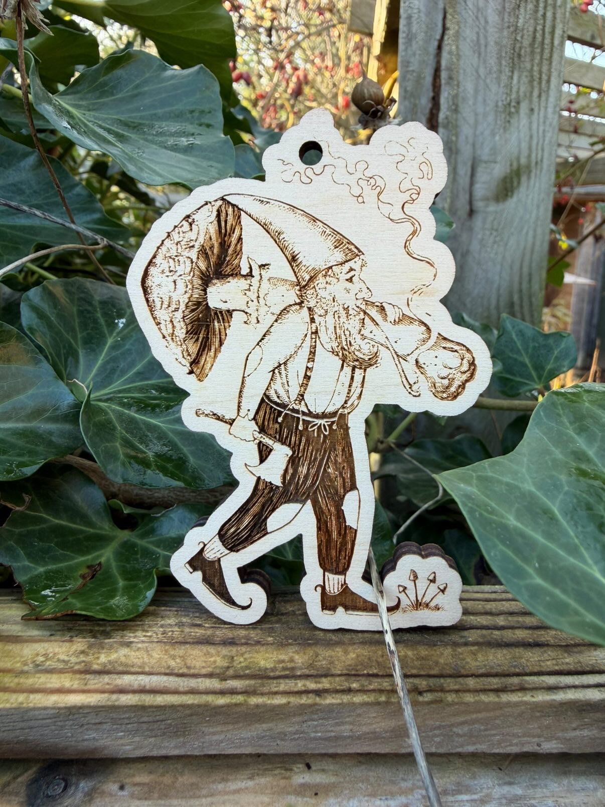 Laser cut on birch wood.